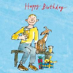 A cheery little illustration from Quentin Blake of two best friends celebrating a birthday together