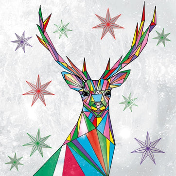 Send your season's greetings with these striking Christmas cards featuring a colourful geometric stag illustration with silver foil details by artist Matthew Williamson.