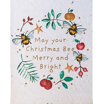 May Your Christmas Bee Merry and Bright Seed Card. This bee themed Christmas card is printed onto wildflower seed card which can be planted in Spring. This Christmas card is blank inside, printed on seed embedded card and comes with a quality envelope.