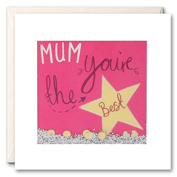 Mum, you're the best. Shake things up with this mother's day card filled with loose silver glitter, pink and clear heart confetti. Blank inside, printed on luxury paper and comes with an envelope.