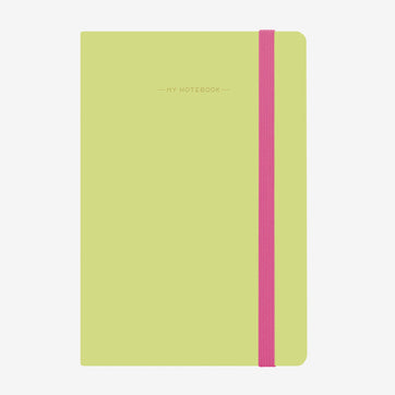 This high-quality notebook from Italian stationery designer Legami has 192 squared pages - perfect for note taking or bullet journaling. It includes a 12-page monthly planner, address book section, password pages, and archive pocket for loose pages. The cover is made from a soft PU leather, along with elastic closure and pen holder. This design features a playful lime green cover with pink elastic closure.