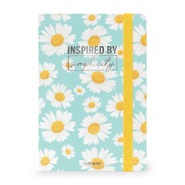 Keep it simple with this daisy patterned medium weekly 2022 diary with notebook. With the days on the left and a ruled note page on the right, you can keep up to date with your plans and to-dos. Includes a holiday planner and a double page planner for every month, including January 2023. Keep tidy with an elastic closure and back pocket.