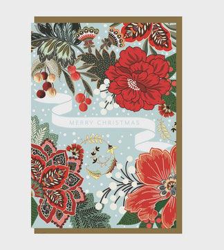 This beautifully designed card is part of our popular Honey range, created by artist Linsey Kelly. Featuring an enchanting blue floral scroll pattern and a simple 'Merry Christmas' message, it offers a sophisticated way to wish friends and family well this season.