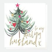 A Christmas card just for him, featuring a Christmas tree and gold cursive writing, this card is a sweet sentiment just in time for the holiday