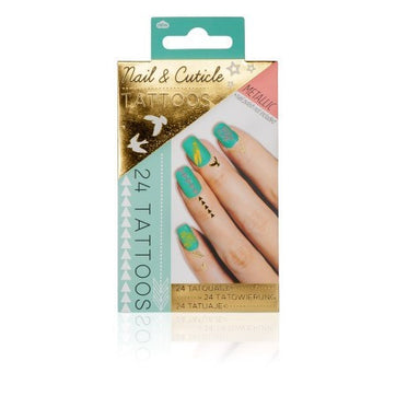 These nail and cuticle tattoos can be applied to nails and fingers for an instant style boost. Pack contains 24 tattoos in coloured and metallic finishes and on-trend designs.