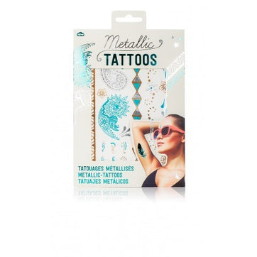 Never again worry about losing your favourite jewellery at a festival or while sunbathing. This stunning collection of temporary metallic tattoos in turquoise and silver will make a real fashion statement. With feathers, henna and bindi designs you can change your look as often as you like.