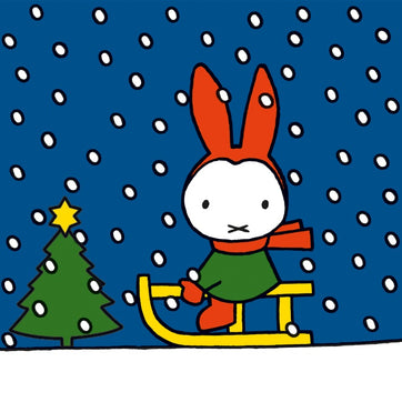 Dick Bruna's Miffy is instantly recognisable, and this bright and bold illustration of the famous rabbit sledging down a snowy hill is a wonderful way to send some love this Christmas.