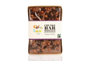 This chocolate bar is made from smooth 37% milk chocolate,and contains whole crunchy hazelnuts and fruity sultanas - what a delicious combo!