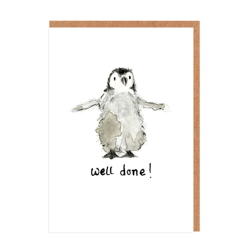 Send a little note to tell some 'Well Done' with this sweet Ivy Penguin Mini Card. Designed by award-winning Edinburgh-based children's author and illustrator Catherine Rayner, the adorable Ivy Penguin has her wings out to give someone as big a hug as a pengiun can. This card is blank inside and includes a brown kraft envelope.