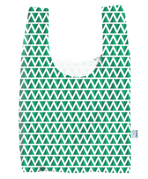 This reusable shopping bag from Kind Bag is made of 100% recycled material. It is lightweight, waterproof, and sturdy - large enough for your grocery shopping but easy to fold and neatly store so you can always be ready. This style features a fresh green and white zig-zag pattern. Eco-conscious and fashion forward!