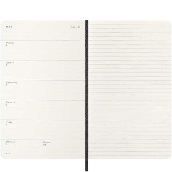 This Moleskine Classic Weekly Diary, presented in a sophisticated large format and a tactile soft black cover, is more than a scheduler—it is the portable studio for your life. Running seamlessly from January to December 2026, the intelligent 'Weekly Notebook' layout is designed for maximum efficiency. It presents the entire week's appointments on the left-hand page, with an entire ruled page opposite for your to-do lists, expansive notes, and spontaneous ideas. This ensures your schedule and your thoughts live side-by-side, perfect for the modern professional or creative spirit.