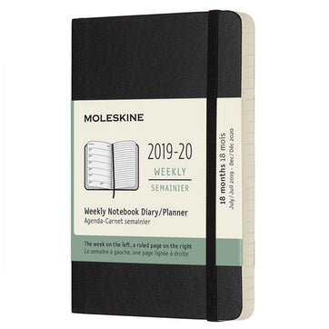 This 2019/20 black Moleskine 18-Month academic diary runs from July to December, with the classic format of the week's appointments on the left while the oposite page is ruled for notes and ideas on ivory white Moleskine paper.