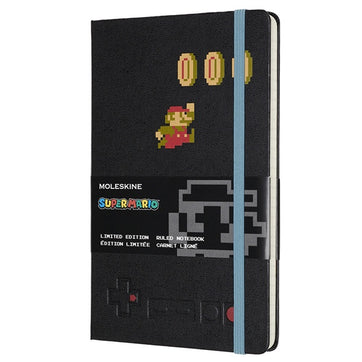 This hard cover Super Mario Limited Edition Moleskine notebook is designed to look like the pixilated world of 8-bit Super Mario. It comes with themed stickers and endpapers based on game graphics.