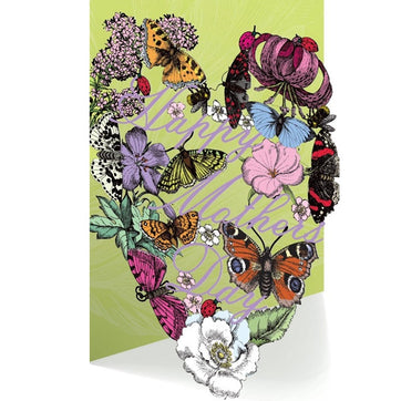 Happy Mother's Day. This lasercut Mother's Day card is part of the Peacocks and Admirals range of cards and comes with a quality white envelope.