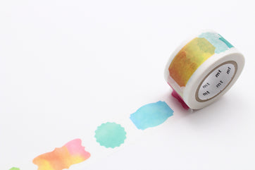This sweet washi tape features a design of colourful watercolour shapes. A lovely way to add a unique twist to any gift.