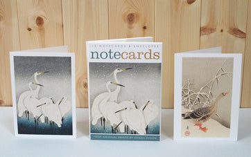 Pack of 10 Notecards by Japanese painter and printmaker, Ohara Koson, featuring his Herons in the Snow and Goose in the Snow prints.