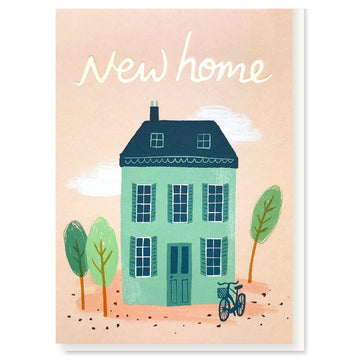 New Home. This new home card in light pastel colours is finished with gold foil. This card is blank inside, is printed on thick card with vegetable inks and comes with a white envelope.