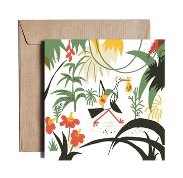 The stork has a no return policy - and this card shows him going to great lengths to bring around an arrival. Show your happiness and excitement for the new arrival with this brightly illustrated card! It has been left blank inside for your own message and comes complete with an envelope ready for sending.