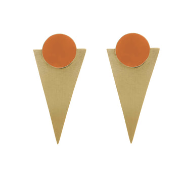 These brass drop earrings are hand cut and polished using traditional jewellery techniques. The colour is added using enamel paint. With silver plated ear posts.
