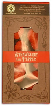 This delicious chocolate bar combines the sweetness of strawberry with the heat of peppercorn which, blended with rich organic chocolate, creates a satisfying treat.