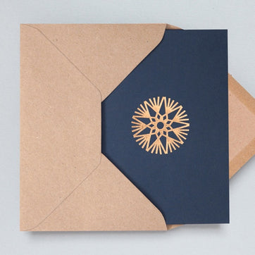 Rose gold Christmas ornament foil blocked on navy card. This Christmas card is printed on 270gsm paper, is blank inside, packed in biodegradable cellophane and comes with a quality Kraft envelope.