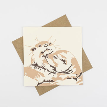 Made by Lizzie Parker of Penguin Ink, her letterpress colletion of cards is both simple and tactile. Produced on an original Heidelberg Platen printing press from the early 20th century, Liz's cards are printed on paper from sustainable forests milled in Italy. Otters are very family orientated animals and this pair snuggling up to each other is a perfect card to give to your partner or family member for any occasion.