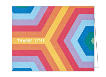This foil accented pack of 10 thank you cards and envelopes reads 'than you' alongside a bright rainbow geometric pattern.