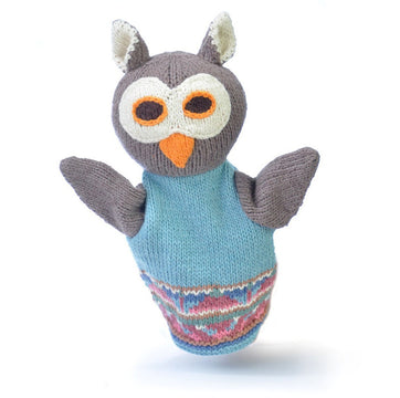 This fun owl hand puppet made from organic cotton is hand-knitted and fits most adult hands. It is chemical free so good on your children’s skin.
