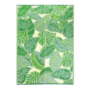 This vibrant leaf pattern rug is ready for whatever you throw at it. Made from woven plastic, this sturdy rug can withstand rain, drink spills, and soggy pets. Ideal for outdoor use or adding some colour to your utility room or bathroom.