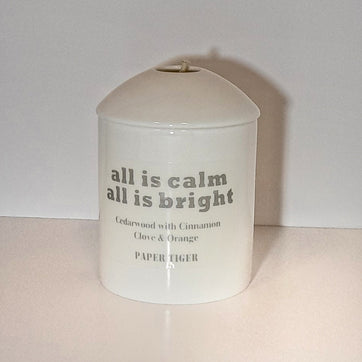 The herbal fragrances of cloves and cinnamon give our All is Calm, All is Bright candle a warm, spiced scent whilst the top notes of orange citrus give this candle a refreshing lift.