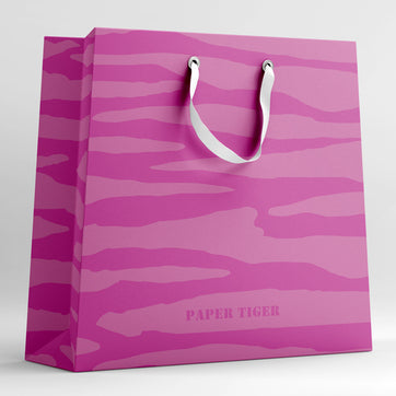 Our Paper Tiger Stripes are a perfect pattern for a striking Gift Bag! This deep pink stripe pattern is a distinctive way to give a gift,