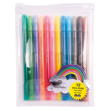These duo pens come with both a felt tip and fineliner in this set of 12 colours.