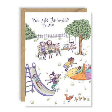 A playful, colourful card for all the fun mums out there! Joy Nevada brings playground fun to life in this illustration featuring several mums and children enjoying the outdoors!