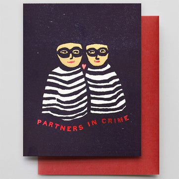 Partners in crime. Let someone special know just how you fell about them. This letterpress printed card is blank inside, is printed on 110lb recycled card and comes with a quality red envelope.