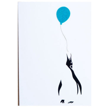 This party penguin card comes in a range of colours: orange, yellow, mint, teal and purpl and is hand finished with a felt balloon. This card is blank inside and comes with a brown kraft envelope.