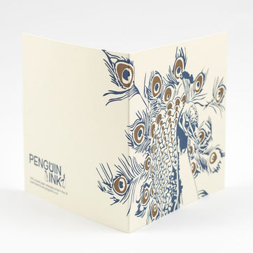 Made by Lizzie Parker of Penguin Ink, her letterpress colletion of cards is both simple and tactile. Produced on an original Heidelberg Platen printing press from the early 20th century, Liz's cards are printed on paper from sustainable forests milled in Italy. This peacock proudly shows off his train and the copper ink detail shows him in all his majesty.