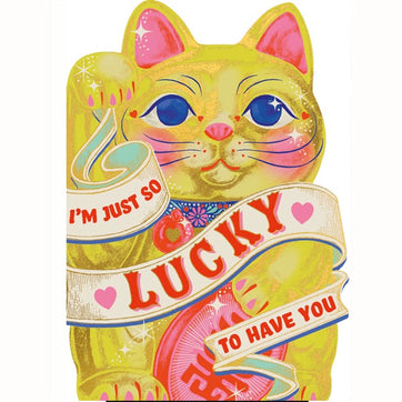 I'm just so lucky to have you. Inspired by the iconic Japanese Maneki-neko, this Valentine's card replaces the traditional gold coin with a shimmering, gold-embossed cat. It’s the perfect choice for the person who makes you feel like you’ve hit the jackpot.