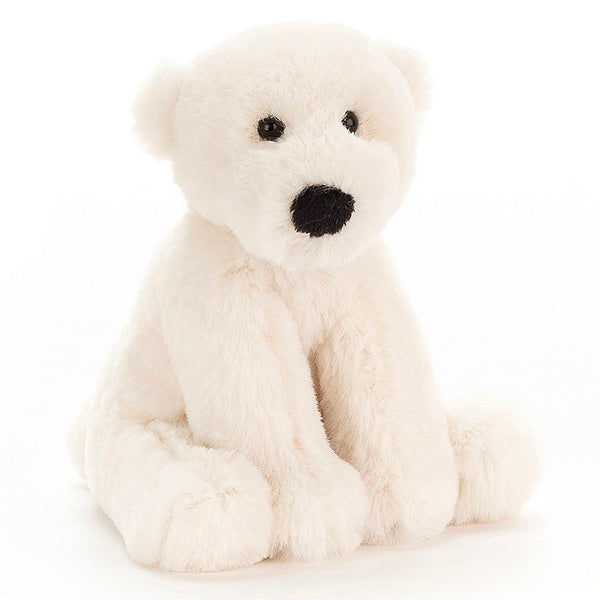 A tiny baby bear to cuddle! He's an arctic sweetheart who just wants to snuggle up with you! You won't need to travel to the North Pole to play with this Jellycat Perry polar bear .