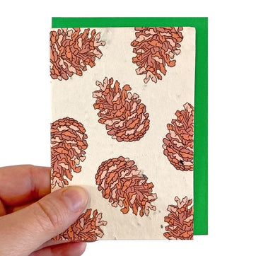 This adorable mini card is printed on seed paper - so it can be planted after reading! Simply plant the paper under a layer of compost and water. This design features a cute pine cone illustration.