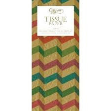 Four sheets of Christmas tissue paper, designed and manufactured in the United States.