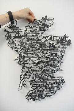 This quirky and unique lasercut map is a celebration of the sights of Scotland - from Edinburgh to Stornoway, from Thurso to Galashiels. Created by AllJoy Designs, its comes rolled in a tube ready for you to mount however you please.