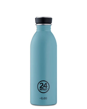 A sturdy, non-insulated and lightweight drink bottle from 24 Bottles, in a dreamy powder blue, perfect for on-the-go everyday life.