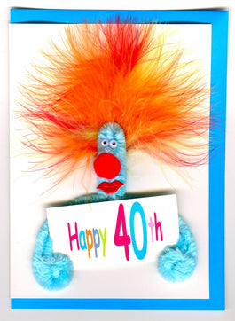 A fun and silly handmade card to bring a smile to anyone celebrating their all important 40th birthday! Made from pipe cleaners, colours may vary. Left blank for your own message.