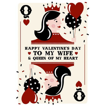 Happy Valentine's Day to my wife & queen of my heart. This embossed Valentine's card has the message "happy valentine's day" inside, is printed on 280gsm textured board and comes with a quality red envelope.