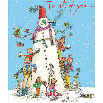 Wish you and yours a Happy Holidays with this fantastic card featuring a playful illustration of a Family enjoying their Wintery fun by iconic illustrator Quentin Blake. This card includes an envelope so it is ready for sending!