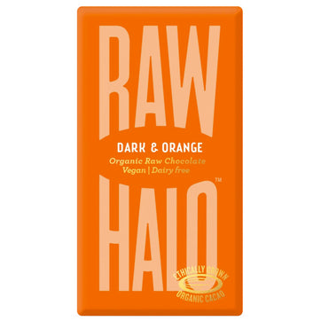 This award winning 76% raw dark chocolate bar is flavoured with delicious sweet orange.