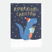 Send Jurassic Christmas love to your friends and family with this quirky design, with an added embellishment of Christmas sparkle.