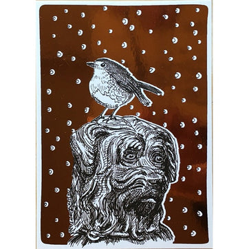 Local made Christmas card from the Edinburgh Sketcher of a copper foiled robin sitting on the head of Greyfriars Bobby. Printed on recycled card, blank inside and comes with a brown envelope.