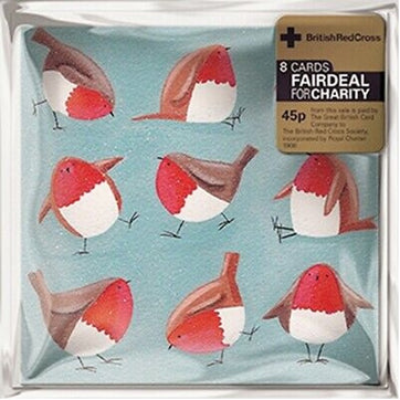 This pack of charity Christmas cards shows a winter warm-up for a robin redbreast. The card has the message "Merry Christmas" inside and comes with a quality envelope.