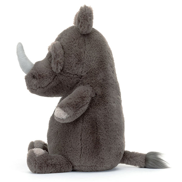 When not found bathing in the muddy pools of his home, this rambunctious rhino is sure to be up for hanging out and winding down! Soft sooty fuzz and a grey horn you can't miss make this frowny fellow a hit. A weighted, beany bottom and little petal ears makes Roderick Rhinoceros a heavyweight champ of the heart.